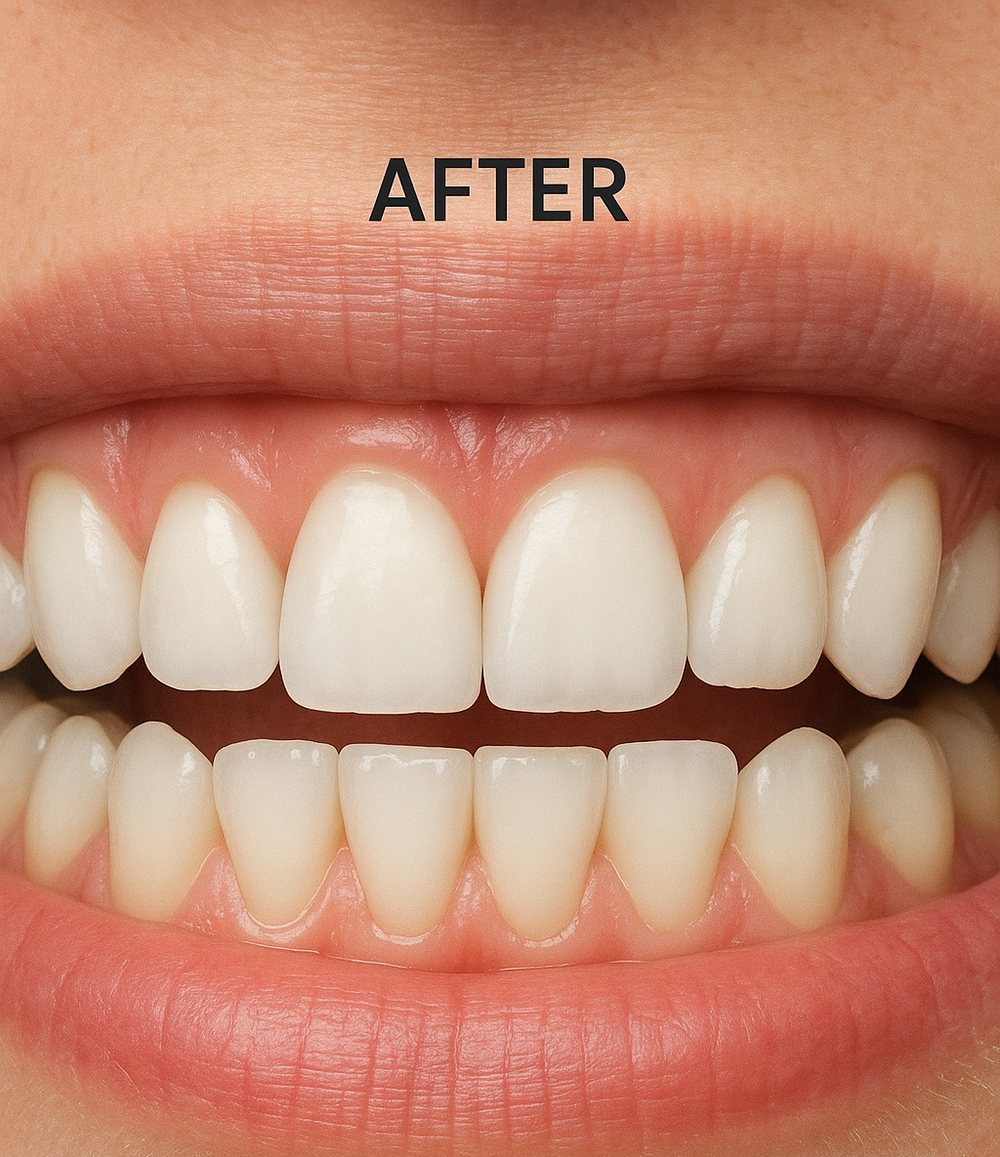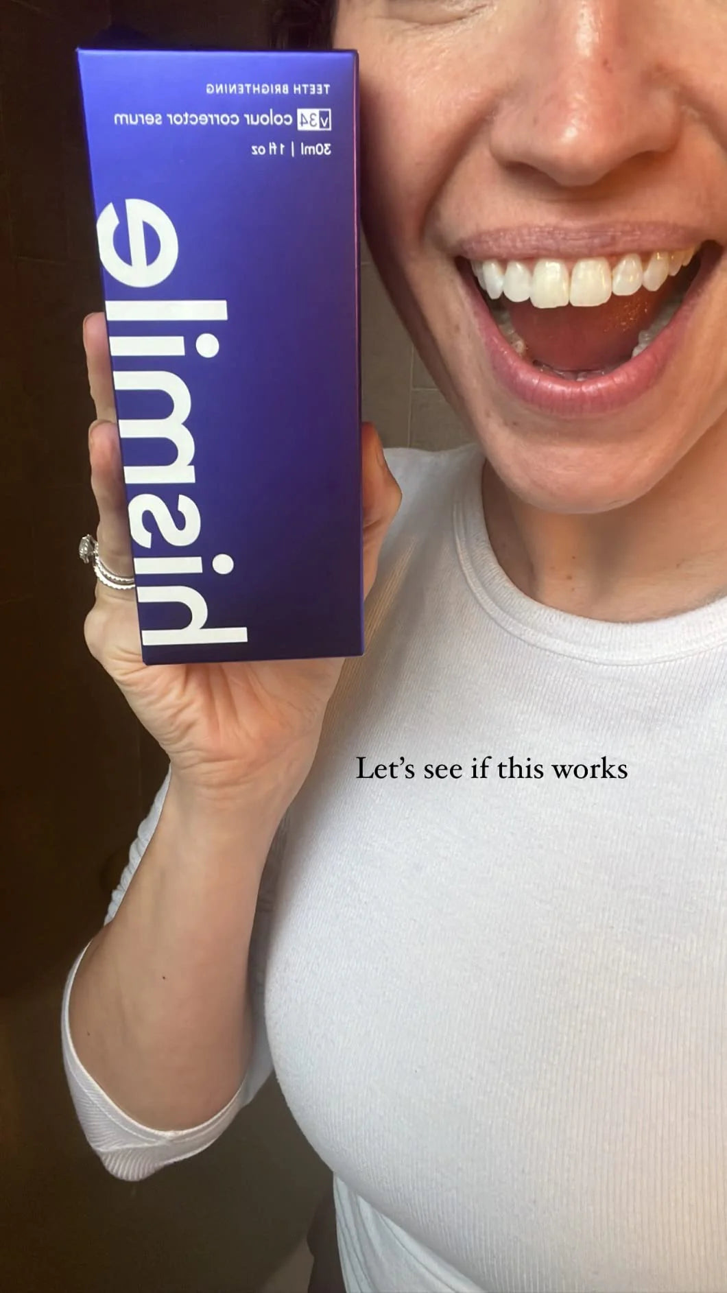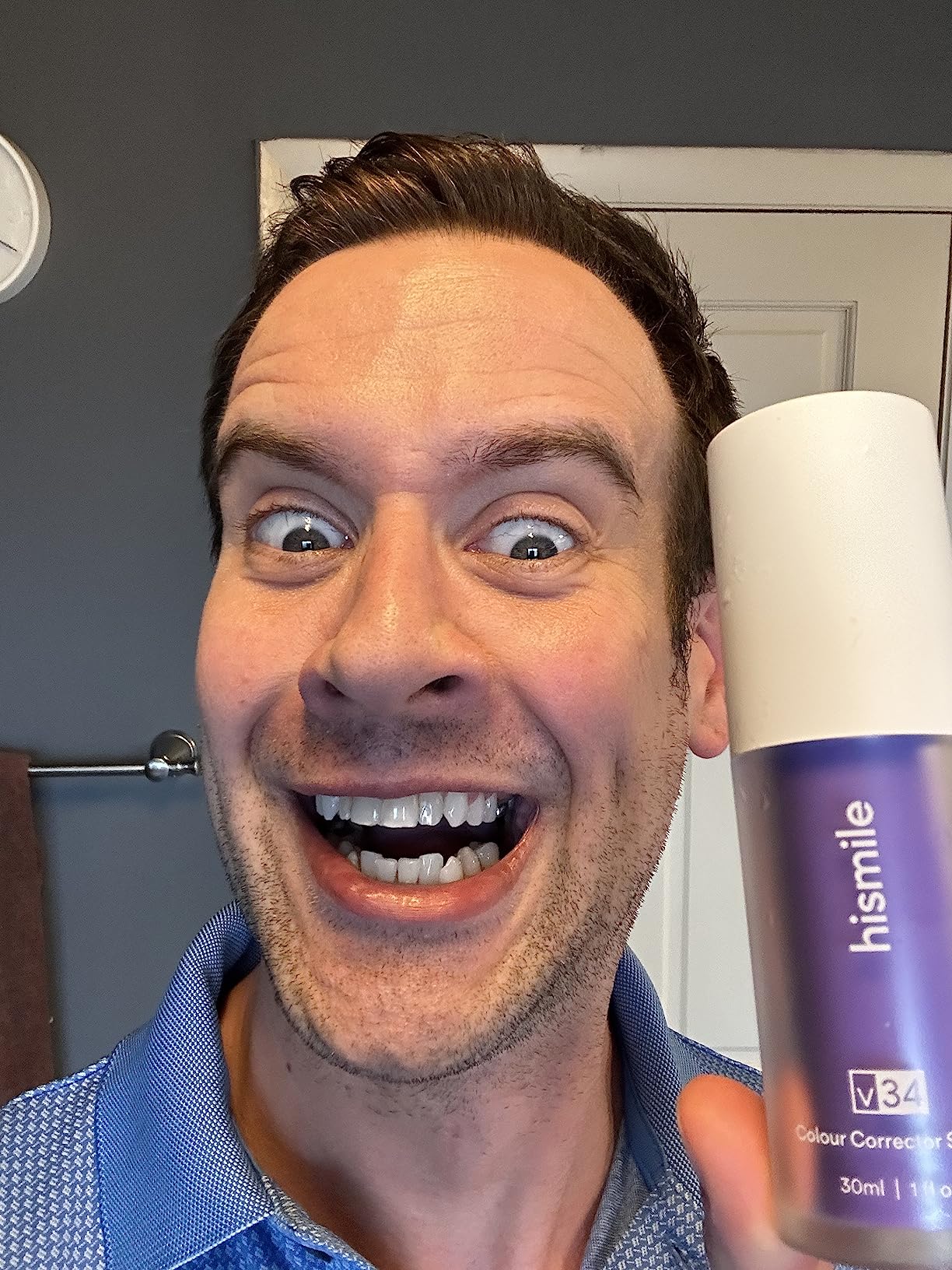 V34 is a colour-correcting brightening serum (not a bleach) that neutralizes yellow tones on your teeth, giving them an instantly whiter appearance.